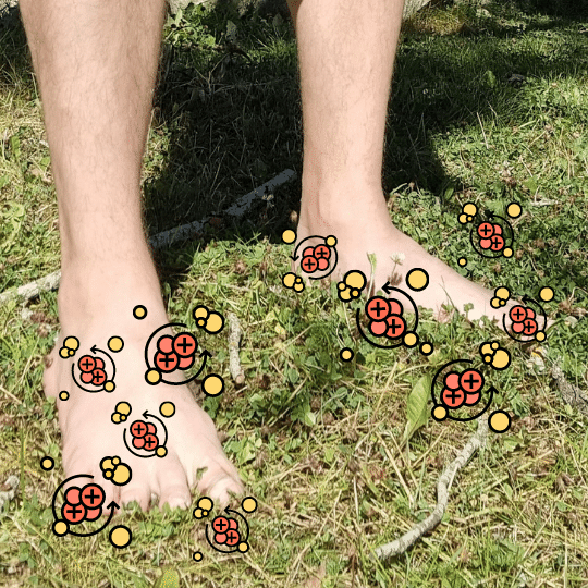 Paljain jaloin kulkiessa tapahtuu maadoittumista
