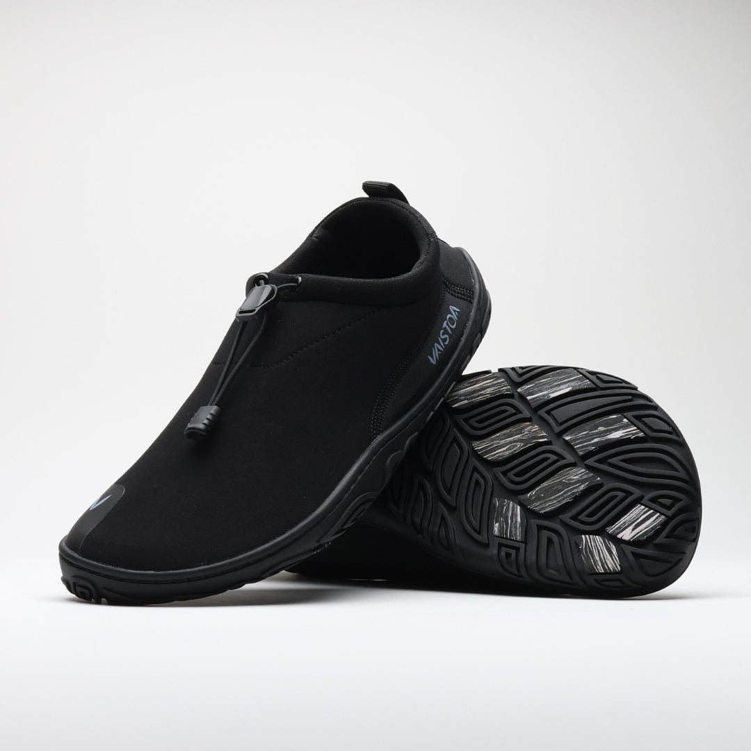 Nyt on mahdollista nauttia avannossa käymisestä paljasjalkakengillä! Monet avantouintiin tarkoitetut kengät ovat toki jo valmiiksi kevyitä, tasapohjaisia ja joustavia, mutta niistä puuttuu leveä jalan anatomian mukainen varvastila!