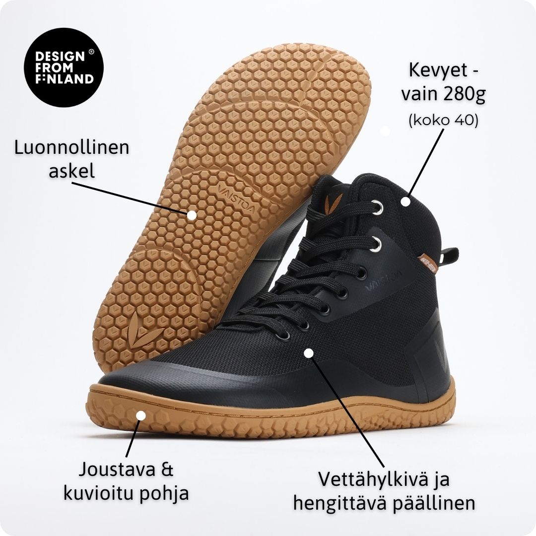 Näillä kengillä kuljet vapaasti, väsyttämättä jalkojasi ja aistit ympäristön jokaisella askeleella.